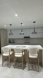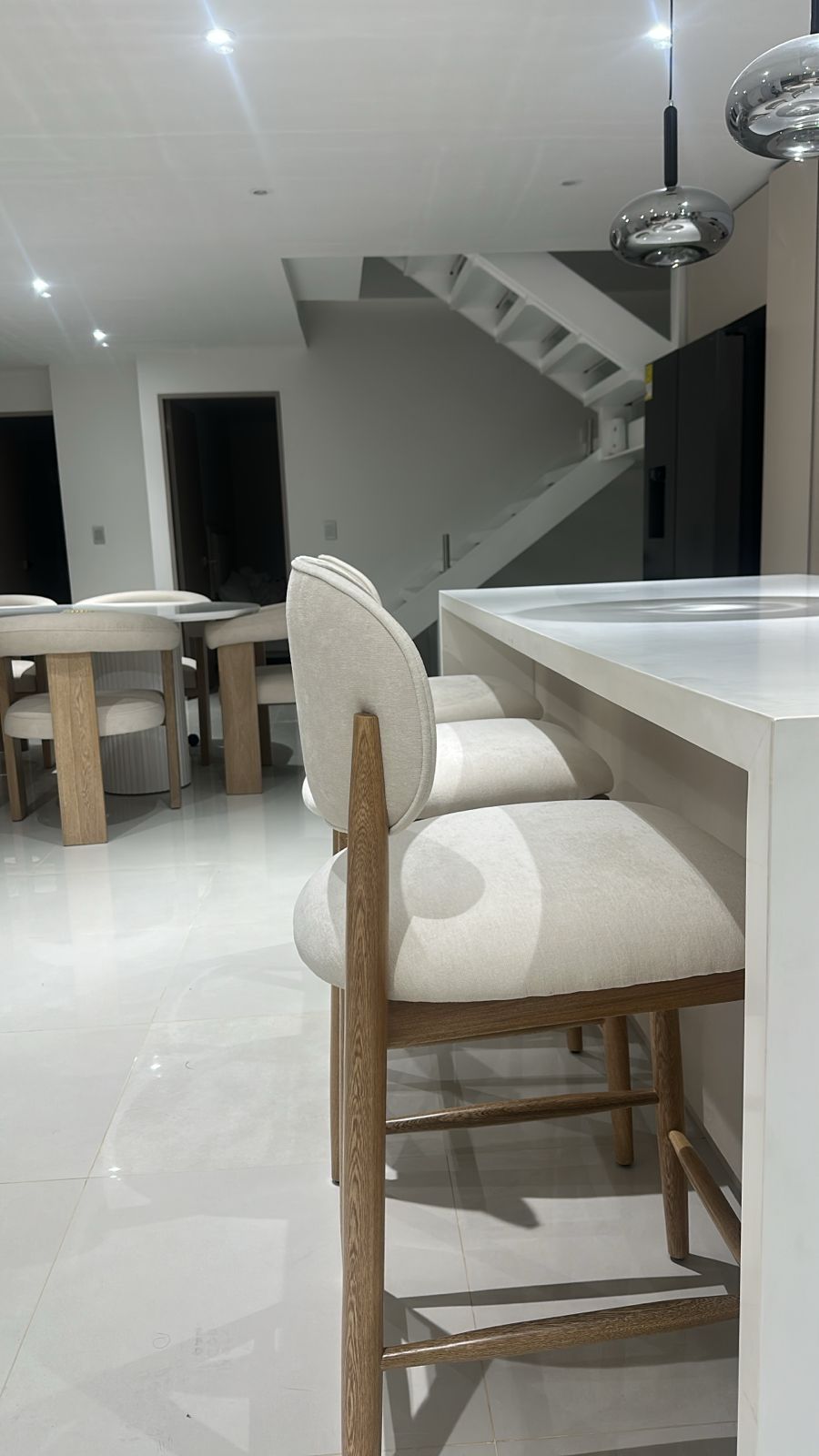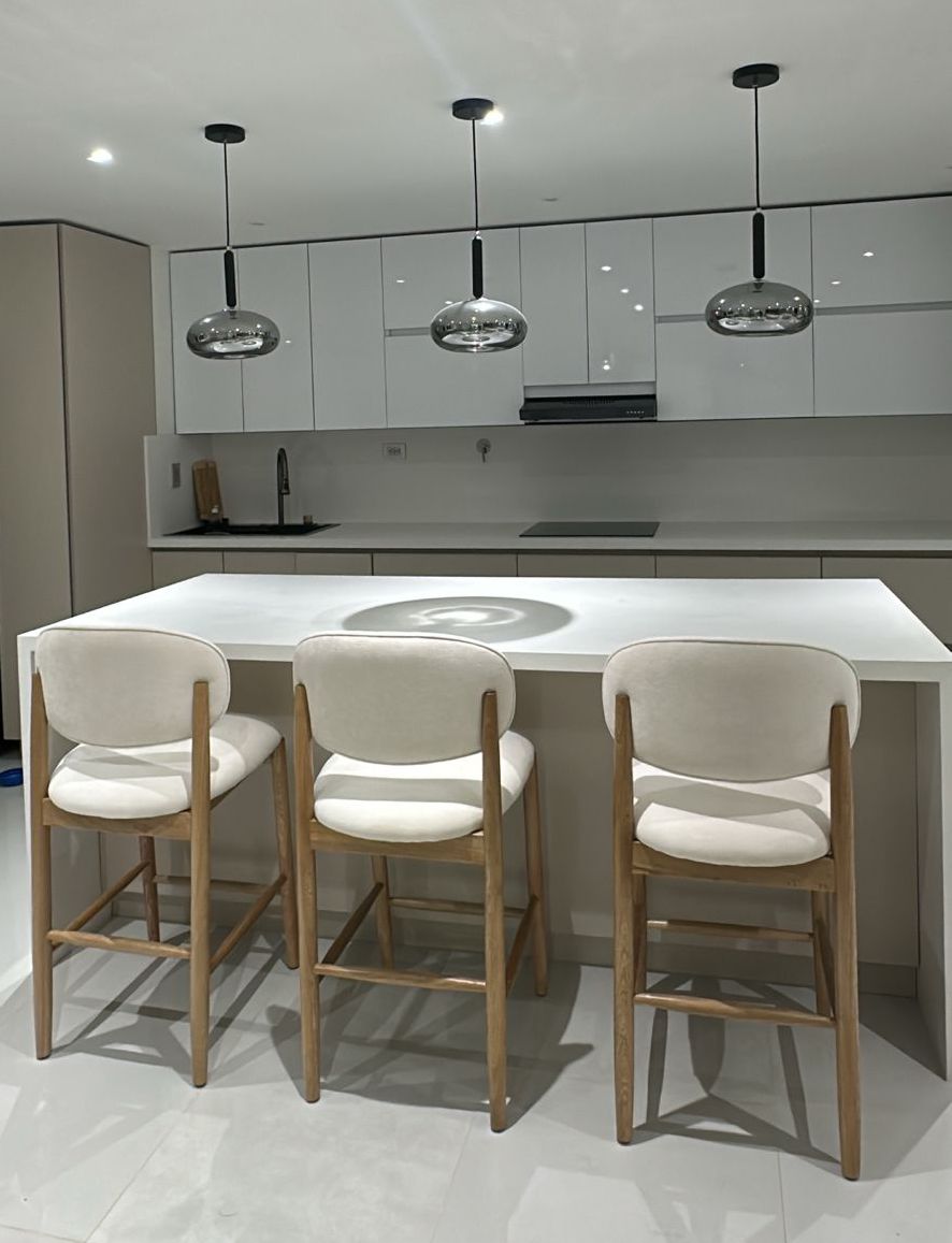 El respaldo acolchado de líneas curvas envuelve con sutileza, ofreciendo una experiencia de asiento elegante y relajada. Su estética minimalista con acabados impecables la convierte en el detalle perfecto para cocinas modernas, barras exclusivas o ambientes con sello de distinción.