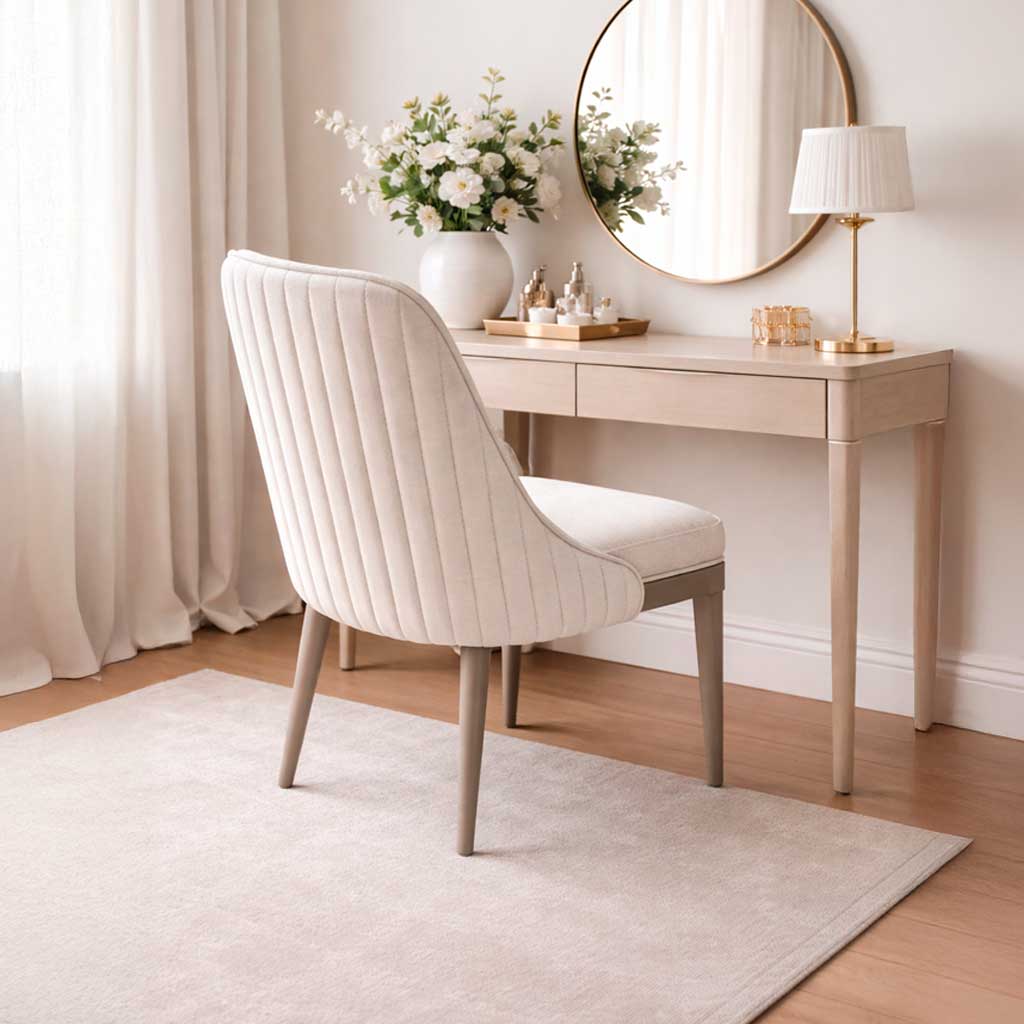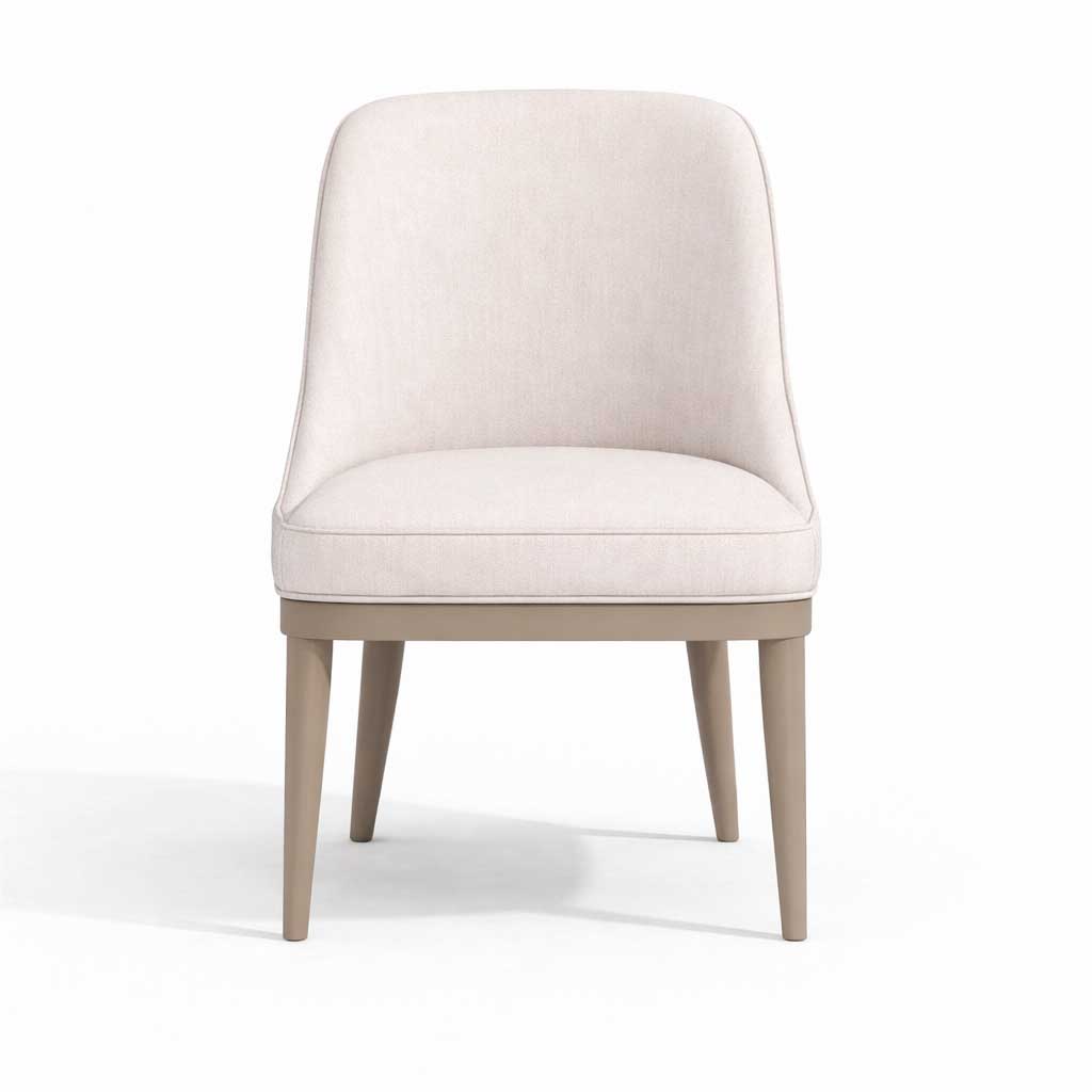 Diseño con tapizado en lino o terciopelo, patas en poliuretano blanco con detalles dorados. Perfecta para ambientes clásicos o modernos.