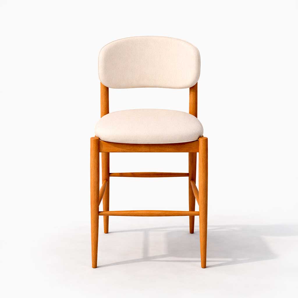La silla de barra Carolina es una pieza que eleva el diseño de cualquier espacio social. Su estructura en madera natural dialoga con un tapizado de textura suave, creando un equilibrio entre sofisticación y confort.