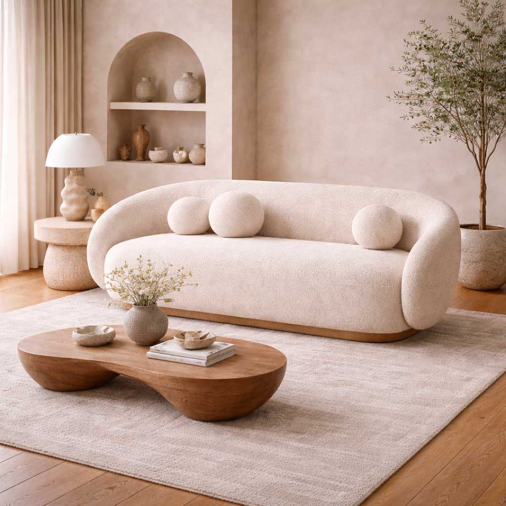 El Sofá Luna Minimalista es un elegante sofá para sala diseñado para aportar comodidad, estilo contemporáneo y una estética limpia al espacio. Su diseño minimalista lo convierte en una excelente opción para salas modernas. Sofá con diseño orgánico y cojines esféricos.